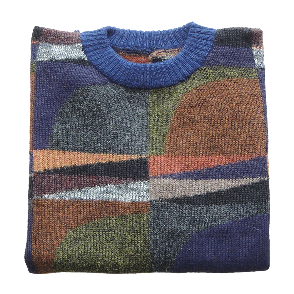 Be the first to review “Men alpaca sweater multicolor Intarsia knitted with geometric pattern.”