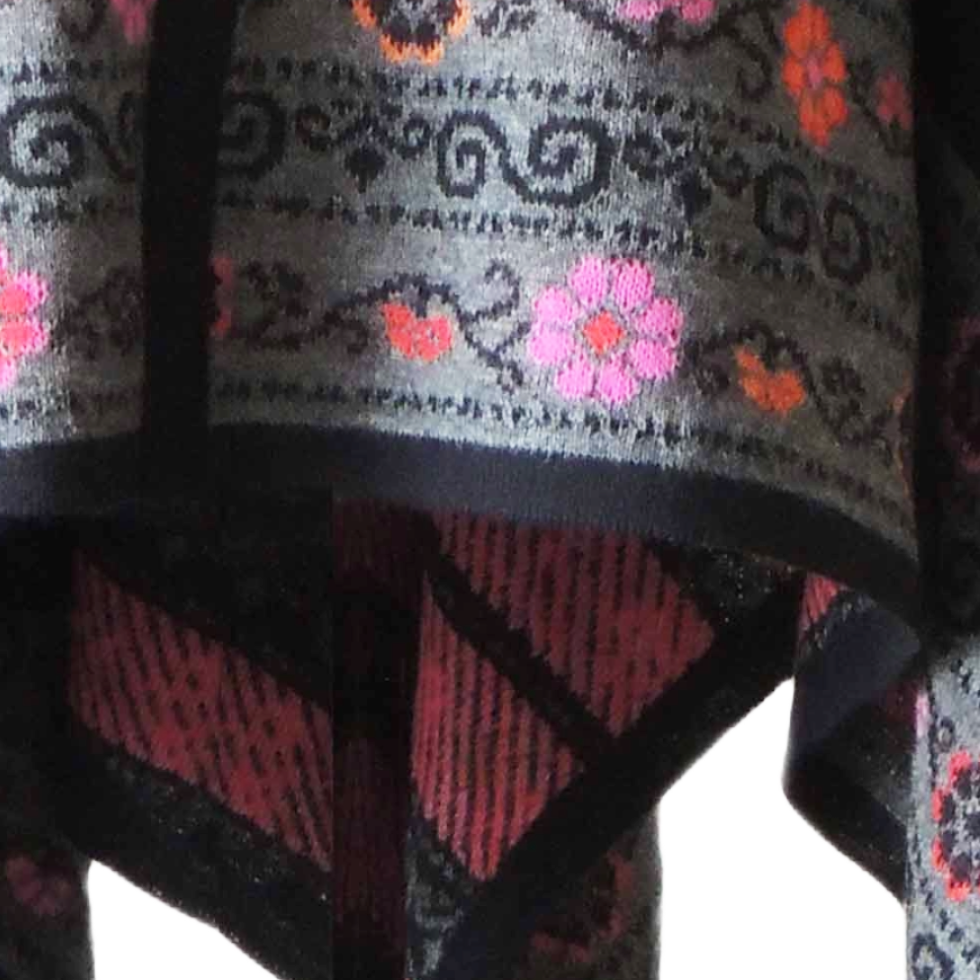 Be the first to review “Ruana, wrap baby alpaca, jacquard knitted with embroidered floral pattern.”