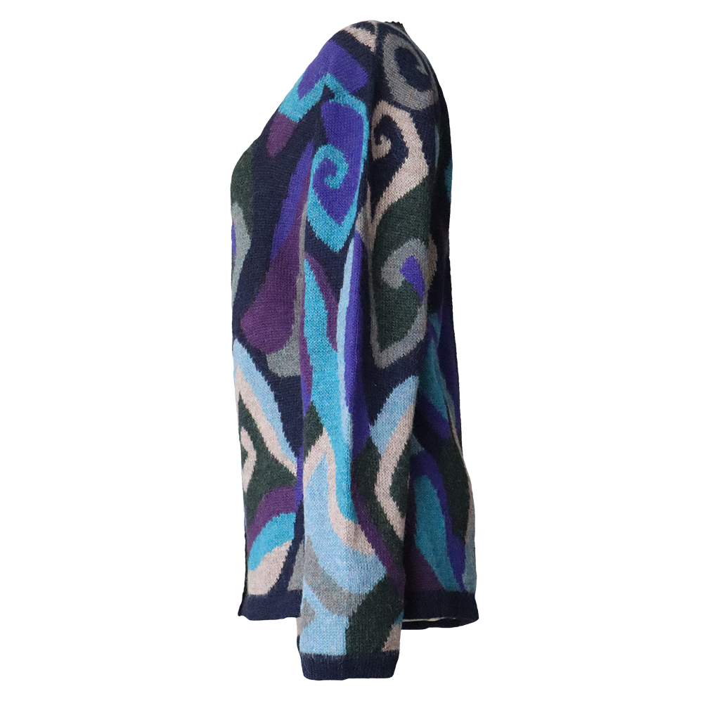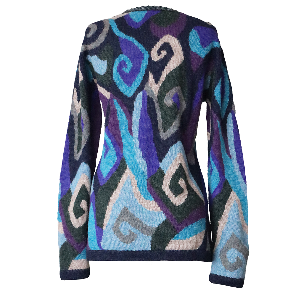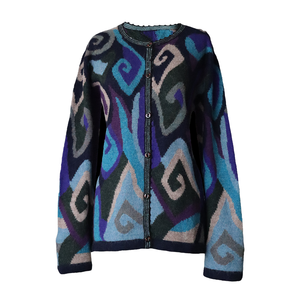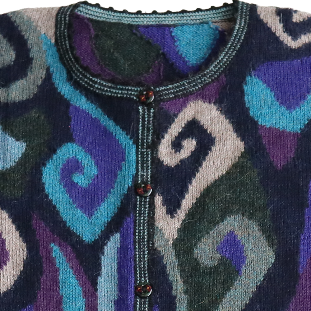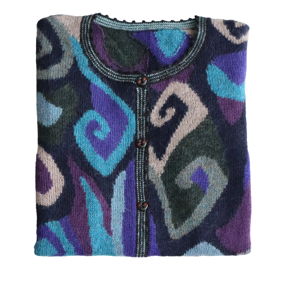 Women’s alpaca cardigan intarsia knitted, 100% alpaca multi color