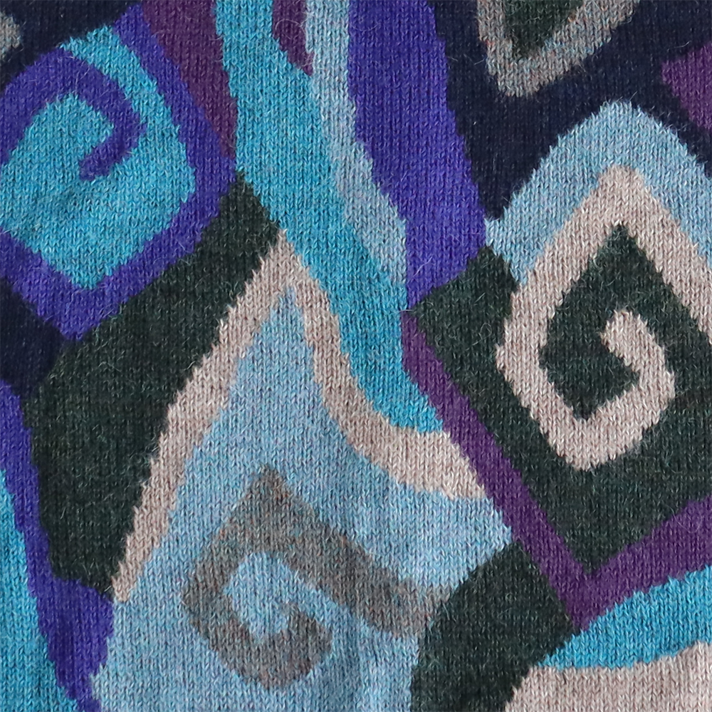 Women’s wrap cardigan alpaca with 3 / 4 sleeves, graphic pattern.